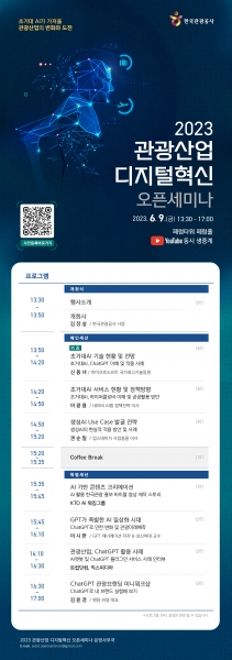 [세종타임즈] 한국관광공사는 6월 9일 서울 중구 페럼타워 페럼홀에서‘2023 관광산업 디지털혁신 오픈세미나’를 개최한다.