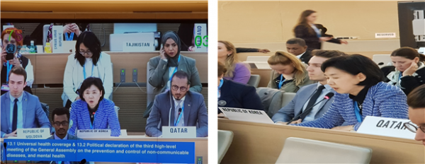 지영미 청장은 5.25 세계보건총회 A위원회의 서태평양지역 대표발언에서 보편적건강보장 달성에 초석이 되는 일차보건의료의 중요성을 강조했다.