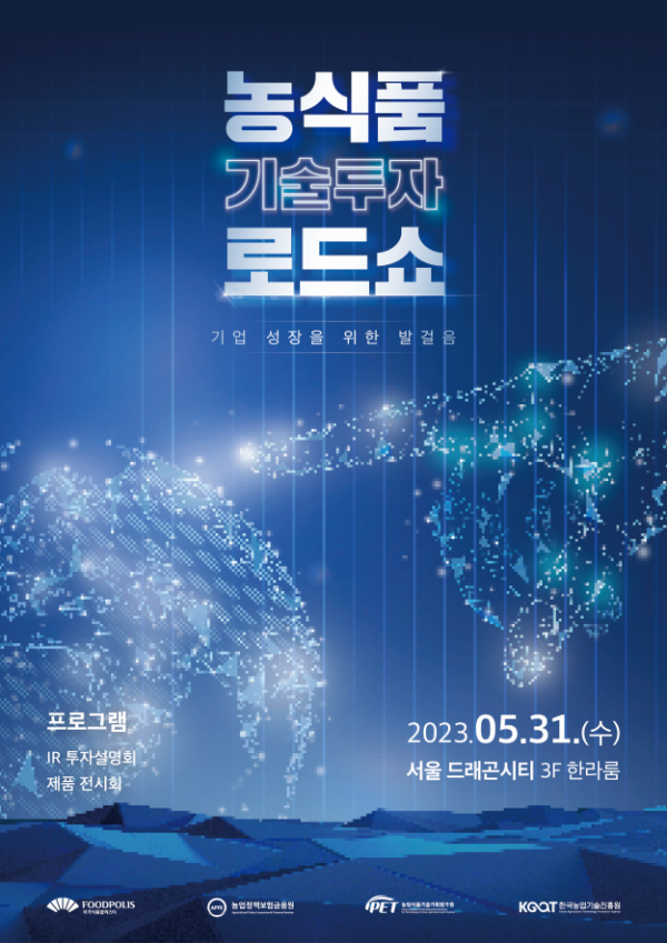 농식품부 담당자는 “2022년 기술투자로드쇼를 참여한 기업 중 7개사가 작년 한 해 동안 50억원 이상의 투자 유치에 성공했다”며 “올해는 참가 규모가 확대된 만큼 그 이상의 성과를 달성할 수 있을 것으로 기대한다”고 밝혔다.