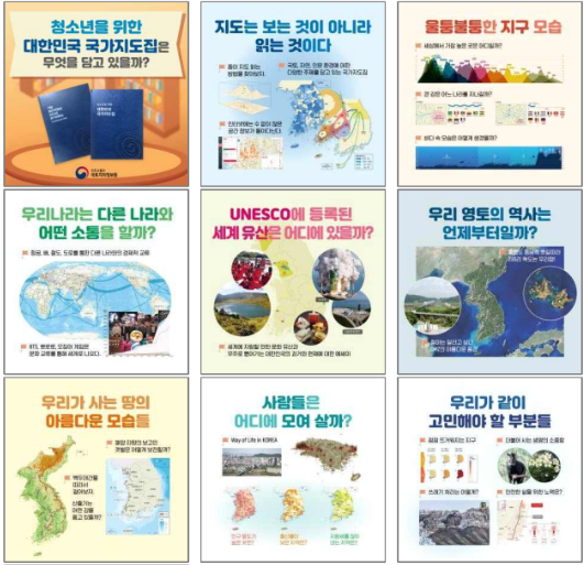 국가지도집은 국내외 교육현장에서 정확한 국토정보를 효과적으로 전달할 수 있도록 최신 통계를 기초로 디지털 지도제작 기법과 인포그래픽을 활용해 국가적 기록물의 위상에 맞는 품질을 확보했다.