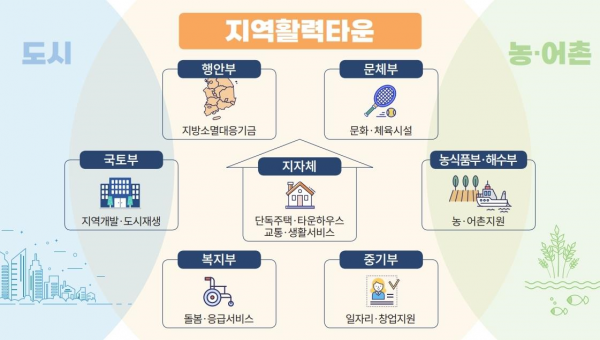 지역활력타운은 은퇴자, 귀농귀촌 청년들의 지역정착을 지원하기 위해 부처별 독자적인 지원에서 벗어나 7개 부처가 함께 주거·생활기반시설·생활서비스를 통합·지원해 살기 좋은 전원마을을 조성하는 사업이다.