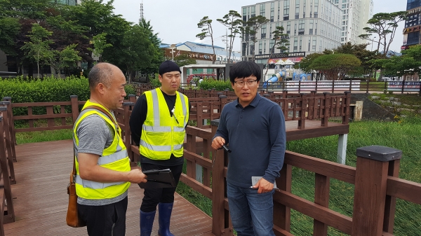 시는 점검 시 고무보트, 드론 등을 활용해 면밀히 점검해 시설물의 노후, 균열, 변형, 부식에 따른 위험요인을 파악한다.