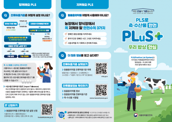 아울러 동물용의약품 표준품 보급, 축·수산물 생산현장 지도를 위한 지자체 담당 공무원 교육 등 축·수산물 PLS의 차질 없는 시행을 위해 적극적인 지원을 실시하고 있다.