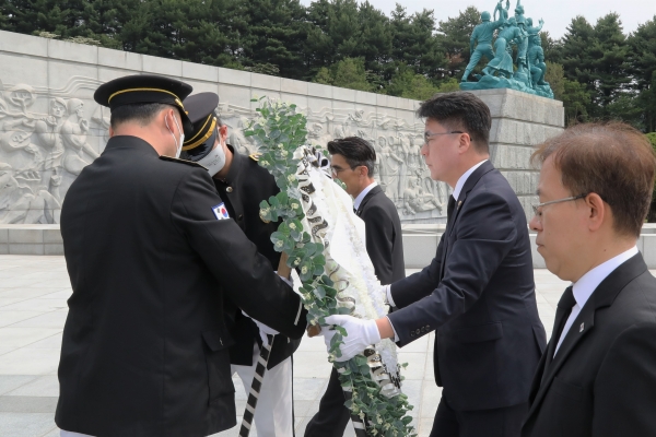 윤 청장은 현충탑 참배 후 방명록에 '국가와 국민을 위한 헌신과 희생 가슴에 새기면서 업무에 임한다'라고 적었다.