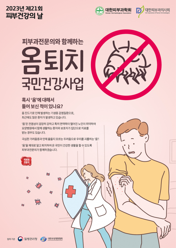 ‘옴 퇴치 국민 건강사업’은 최근 요양병원의 옴 환자 발생 비율이 높아지고 국내 옴 환자가 지속 발생함에 따라 보건 환경을 개선하기 위해 올해부터 대한피부과학회가 질병관리청, 국내 제약사 등과 네트워크를 구축해 진행하고 있다.