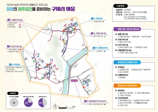 시는 대상지인 남이면 구미리에 2024년부터 4년간 약 21억원을 투입해 생활·위생·안전 기반시설 확충, 주택정비, 마을환경 개선과 공동체 활성화를 위한 휴먼케어 및 주민역량강화사업을 추진할 계획이라고 전했다.