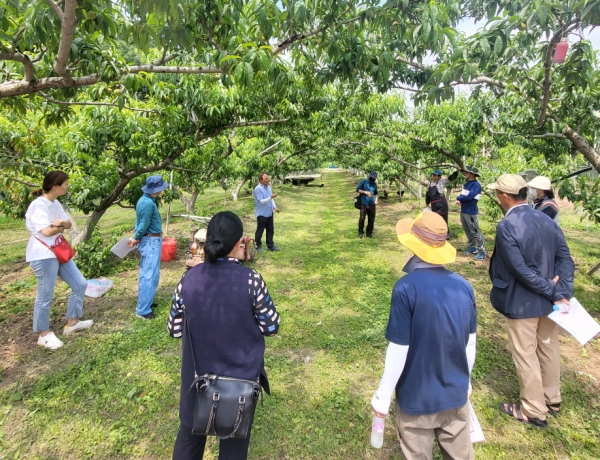 이날 교육은 복숭아 전정기술 교육으로 진행된 가운데 시는 전문적인 재배기술의 교육 효과를 높이기 위해 복숭아 농가를 직접 찾아가 전정 이론과 실습 교육을 병행해 교육 만족도를 높였다.