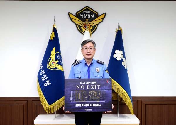 이기식 병무청장으로부터 지명을 받은 김종욱 해양경찰청장은 이날 ‘출구 없는 미로 노 엑시트 절대 시작하지 마세요’라는 문구를 담은 피켓을 들고 인증 사진을 찍으며 마약범죄 예방 릴레이 캠페인에 참여했다.