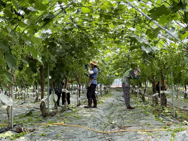 생활개선회 회원들은 포도 알 솎기와 농장 주변 정리 등에 구슬땀을 흘리며 농가와 따뜻한 소통을 했다.