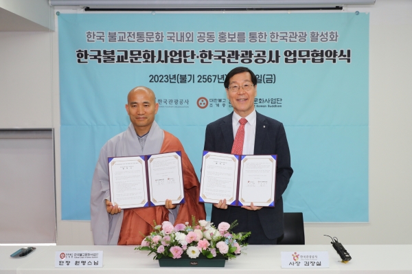 [세종타임즈] 한국관광공사와 한국불교문화사업단은 템플스테이, 사찰음식 등 불교문화 연계 전통문화 관광자원 국내외 홍보를 통한 한국관광 활성화를 위해 6월 16일 서울 템플스테이 통합정보센터에서 업무협약을 체결했다.