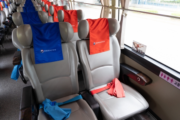 [세종타임즈] 인천 공항버스 내 안전띠가 케이-씨름의 샅바로 디자인되어 방한 외국인 관광객에게 한국의 전통 스포츠 씨름을 홍보하고 있다.