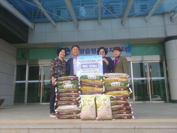 [세종타임즈] 국제로타리3740지구 무극진주로타리클럽 진미숙 회장은 지난 20일 금왕읍행정복지센터를 방문, 어려운 이웃을 위해 백미 320kg을 기탁했다.