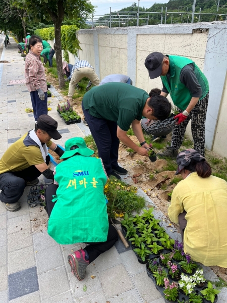 특히 농번기 바쁜 농사일정도 뒤로 하고 꽃모 식재에 적극적으로 참여한 각 마을 새마을 지도자들의 봉사정신이 돋보였다.