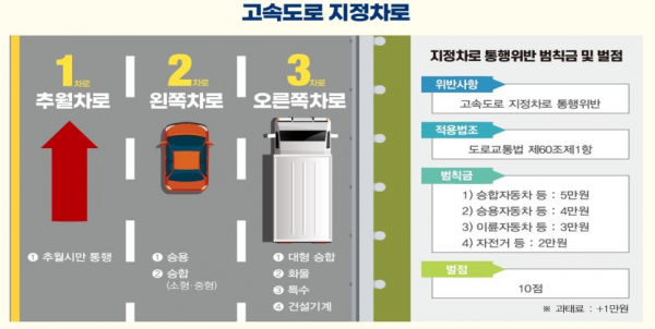 또한, 지정차로 위반차량을 발견할 경우 적극적인 계도를 하고 상습·고질적인 위반 운전자는 단속도 병행할 예정이다.