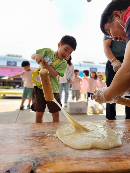 공주 산성문화공원에서 열린 이번 행사에는 공주시 8개 어린이집의 영유아 140여명이 참여해 인절미 떡메치기, 떡 찍기, 부채 꾸미기, 재래시장 놀이 등으로 즐거운 시간을 보냈다.