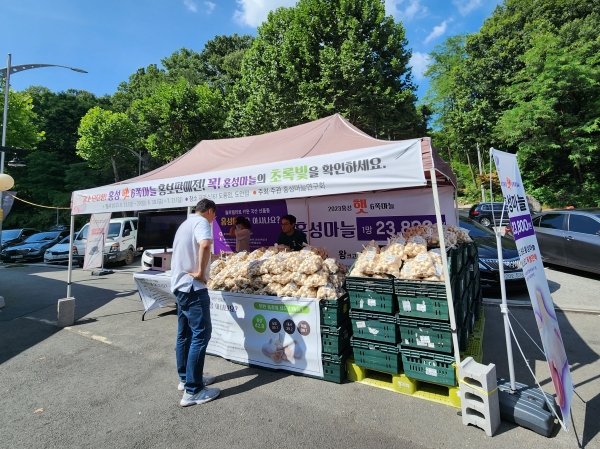 지역 마늘 농가를 돕고 소비를 촉진하기 위한 이번 행사에서는 저장성이 좋고 당도가 높으며 우수한 식감을 자랑하는 올해 수확한 홍성마늘을 저렴한 가격으로 판매하고 있으며 다음달 2일까지 행사는 계속된다.