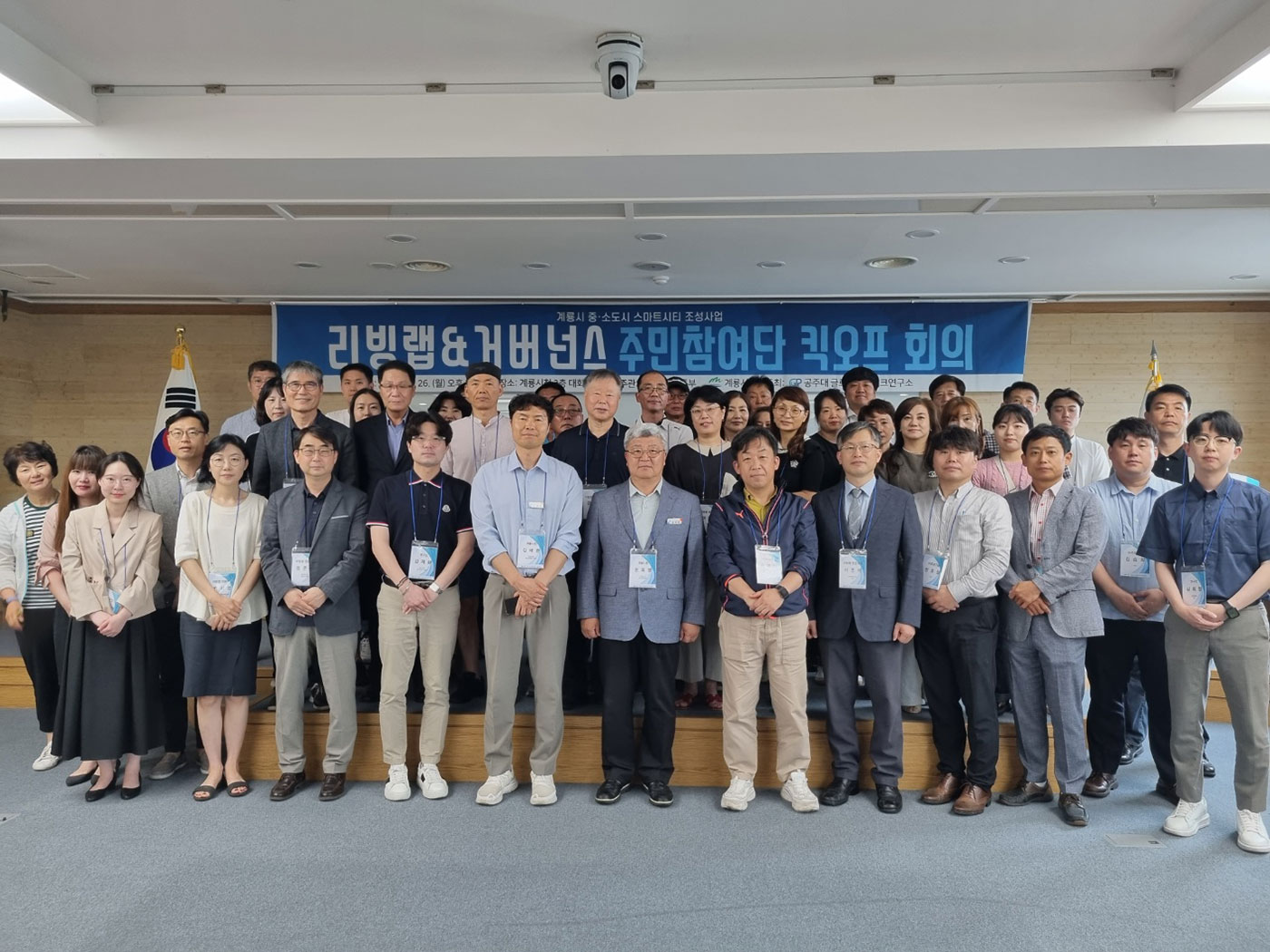 킥오프 회의는 국토교통부 중소도시 스마트시티 조성사업에 선정된 계룡시 스마트시티 조성을 위한 리빙랩과 거버넌스에 대한 첫 번째 주민참여단 상견례로 기획되었으며, 계룡시 김평환 과장, 윤희병 팀장, 김태완 주무관과 ㈜조은기술 박기수 대표, ㈜이노뎁 권영탁 수석, ㈜첫눈 정재훈 팀장, ㈜에셈불 서민석 소장, 한국스마트시티연구소 김진희 소장, 충남개발공사 최재근 부장, 충남연구원 임준홍 박사, 공주대 글로벌프롭테크연구소 김재환 소장, 심희철 교수 등 솔루션 구축을 위한 전문기술업체와 대학, 공기업, 연구소가 함께하였고 무엇보다도 주민참여단 30여명이 참석하여 뜨거운 관심 속에 행사가 진행되었다.