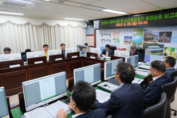 영동군은 지난 26일 군청 상황실에서 담당 부서장들이 참석한 가운데 지난 1년여간의 공약사업 추진상황을 점검했다.