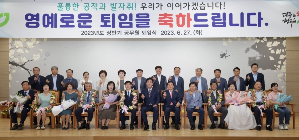 [세종타임즈] 청주시는 27일 서원구청 2층 대회의실에서 2023년 상반기 공무원 이·퇴임식을 가졌다.