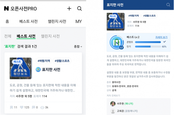 행정안전부는 이런 문제를 해결하기 위해 올해 초부터 네이버의 ‘오픈사전프로’ 영역에 ‘표지판 사전’을 개설해, 자주 발견되는 1백여 개 표지판의 사진과 함께 8개 외국어 번역 초안을 등록했다.