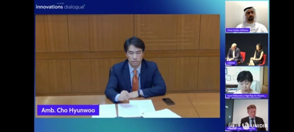 [세종타임즈] 조현우 국제안보대사는 지난 27일 저녁 유엔군축연구소가 주관한 ‘2023 혁신대화 : 미래 전장에 대한 인공지능의 영향’가운데 ‘군사 분야에서의 인공지능 관련 정기적·제도적 대화’라는 주제 하에 진행된 다섯 번째 세션에 토론자로서 화상 참석했다.
