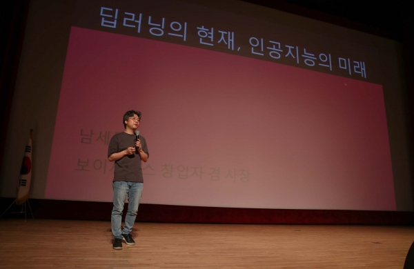 특강에서 남 대표는 “딥러닝의 발전은 현재진행형으로 가까운 미래에는 대부분의 영역이 인공지능으로 대체되겠지만 가장 중요한 가치는 인재와 조직”이라며 “좋은 사람과 좋은 조직이 많아질수록 그만큼 좋은 AI서비스도 많아질 것”이라고 말했다.