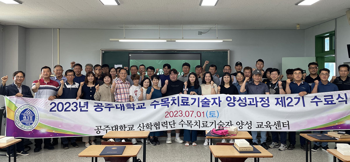[세종타임즈] 국립공주대학교 나무의사 및 수목치료기술자 양성기관은 산업과학대학 회의실에서 1일 ‘수목치료기술자 양성과정 제2기 수료식’을 가졌다고 3일 밝혔다.