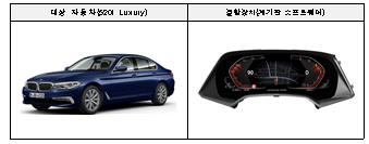520i Luxury 등 92개 차종 69,488대는 계기판 소프트웨어 오류로 계기판 화면의 표시값이 실제값과 다를 경우 화면이 꺼져 안전에 지장을 줄 가능성이 확인되어 7월 7일부터 시정조치에 들어간다.