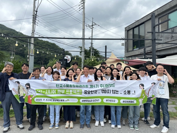 ‘MZ-시니어 중꺾소 Day’는 한수정이 실시하고 있는 임직원 소통 프로그램 중 하나로 이번 프로그램에는 20∼30대 실무 직원으로 구성된 주니어보드와 본부장급 시니어 임직원 등 22명이 참여했다.