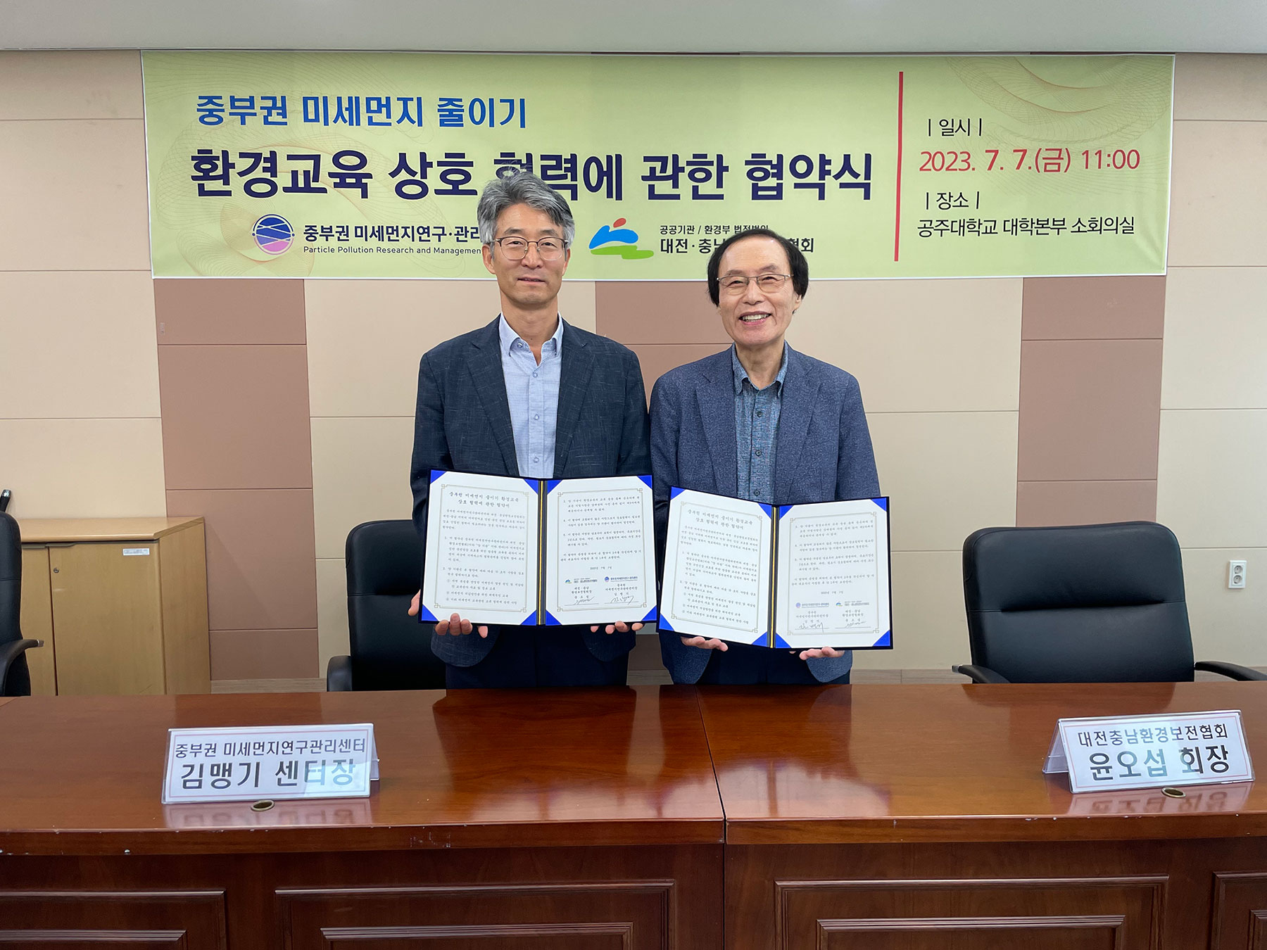 [세종타임즈] 국립공주대학교 미세먼지연구관리센터에서는 지난 7일 미세먼지 줄이기 환경교육 사업에 상호 협력하고자 대전·충남환경보전협회와 업무협약을 체결했다.