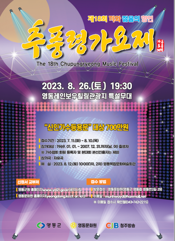 [세종타임즈] 충북 영동군이 제18회 추풍령가요제 참가신청을 다음달 10일까지 받는다.
