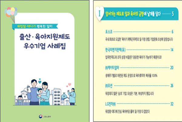 사례집에는 ➊법정 기준보다 앞서가는 제도를 시행하는 사례, ➋육아휴직 종료 후 원활하게 업무에 복귀할 수 있도록 지원하는 사례, ➌아이 키우기 좋은 환경을 통해 회사와 직원이 함께 성장하는 중소기업 사례를 소개하고 있다.