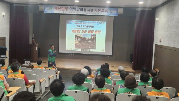 [세종타임즈] 청주시 지역자율방재단과 청주시는 11일 청주상당도서관에서 지역자율방재단원 및 공무원 90여명이 참석한 가운데 지진 대피훈련을 실시했다.