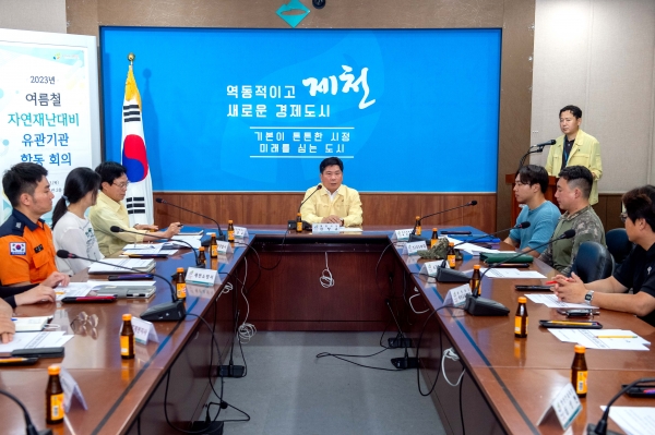 [세종타임즈] 제천시는 13일 제천시장 주재로 여름철 본격적인 집중호우에 대응하기 위해 제천경찰서 제천소방서 군부대 등 8개 유관기관과 대책회의를 개최했다.