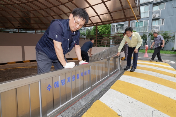 이후 물막이판 설치공사가 완료된 산남동 아파트단지 지하주차장과 영운동 반지하주택을 찾아 침수방지시설 설치 상태와 이상 유무를 점검하며 관계 공무원들의 철저한 호우피해 예방 대처를 주문했다.