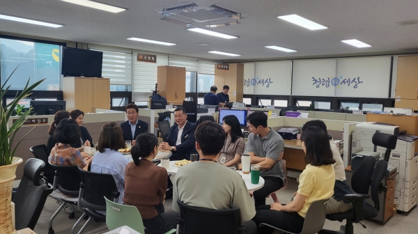계속해서 최 시장은 직원들과 격의 없는 대화를 통해 다양한 고충과 애로사항을 청취하고 노고를 격려하는 시간도 가졌다.