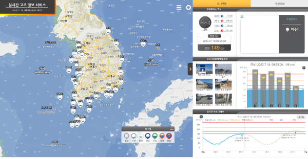 해양수산부 국립해양조사원은 내일까지 충청권, 남해안, 제주도를 중심으로 많은 비가 예보된 상황에서 집중호우와 기상의 영향으로 고조 시간에 실제 해수면이 예측보다 더 높아질 것으로 보고 있다.