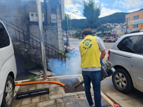 특히 침수 시설과 주택단지 쓰레기 더미, 축사 주변, 마을회관, 화장실 정화조 등을 대상으로 집중 방역을 진행하고 있다.