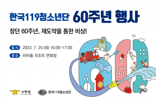 이번 창립 60주년 행사에는 ‘미래안전리더 육성을 위한 재도약’을 주제로 3박 4일 동안 전국 19개 시·도에서 모인 500여명의 119청소년 단원들이 소방활동 생존수영 안전체험활동 안전상식 O·X퀴즈대회 등으로 구성된 전국 안전캠프를 통해 인성개발과 심신을 단련하고 지난 60년간 119청소년단의 발자취를 돌아보고 앞으로의 100년을 다짐하는 타임캡슐 봉인식도 진행할 예정이다.