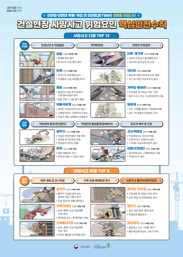 해당 현장은 중소 건설사가 시공하는 중규모 현장으로 단부·개구부, 이동식비계, 사다리 등 사망사고 다발 위험요인은 물론 타워크레인, 건설용리프트, 동바리 등 대형사고 위험요인이 있었으며 안전보건관리책임자와 전담 안전관리자가 선임되어 있었다.