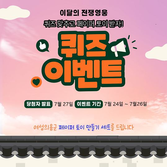 또한, 7월 24일부터 26일까지, ‘전쟁영웅을 기억하다 여성의용군’이벤트를 진행할 예정이며 참여방법은 국립임실호국원 인스타그램 페이지 ♥‘좋아요’를 누르고 이벤트 게시물에 정답을 댓글로 남기면 된다.