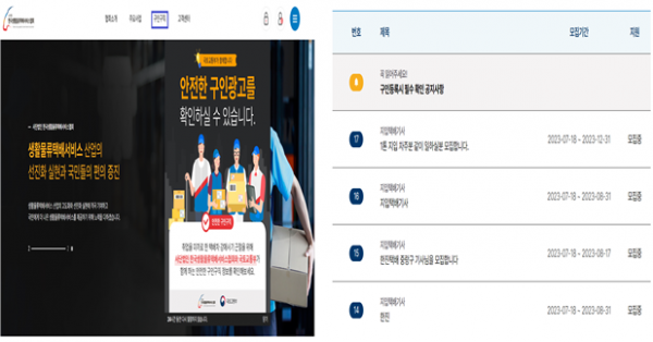 플랫폼은 한국생활물류택배서비스협회 누리집 내에 구축됐다.