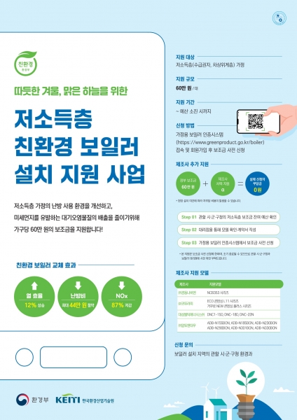 시는 상반기에 이어 하반기에도 일반가정은 10만원, 저소득층은 60만원의 친환경 가정용 저녹스보일러 설치비를 예산 소진 시까지 지원할 예정이다.