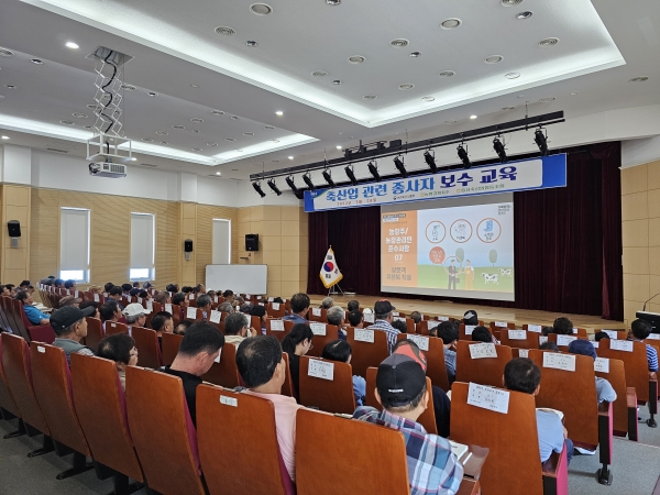 축산법에 따르면 축산업 허가자는 1년에 1회 이상, 가축사육업 또는 가축거래상인 등록을 한 자는 2년에 1회 이상, 축산차량 종사자는 4년에 1회 이상 보수교육을 12월 말까지 의무로 수강해야하는데, 축산관련종사자 교육정보시스템에 접속해 온라인으로 교육을 이수하거나 이번처럼 집합교육 시 수강하면 된다.