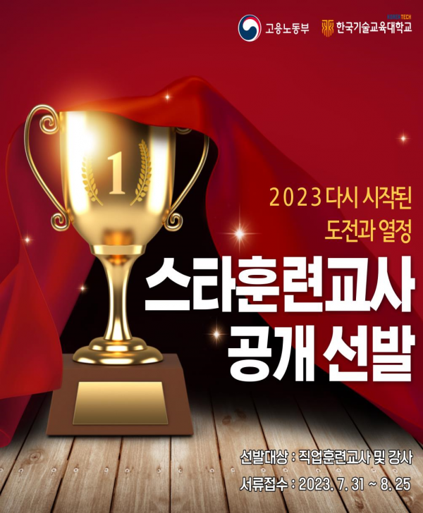 [세종타임즈] 고용노동부와 한국기술교육대학교는 현직으로 활동하고 있는 약 3만명의 직업능력개발 훈련 교·강사 중에서 ‘스타훈련교사'를 선발한다고 밝혔다.