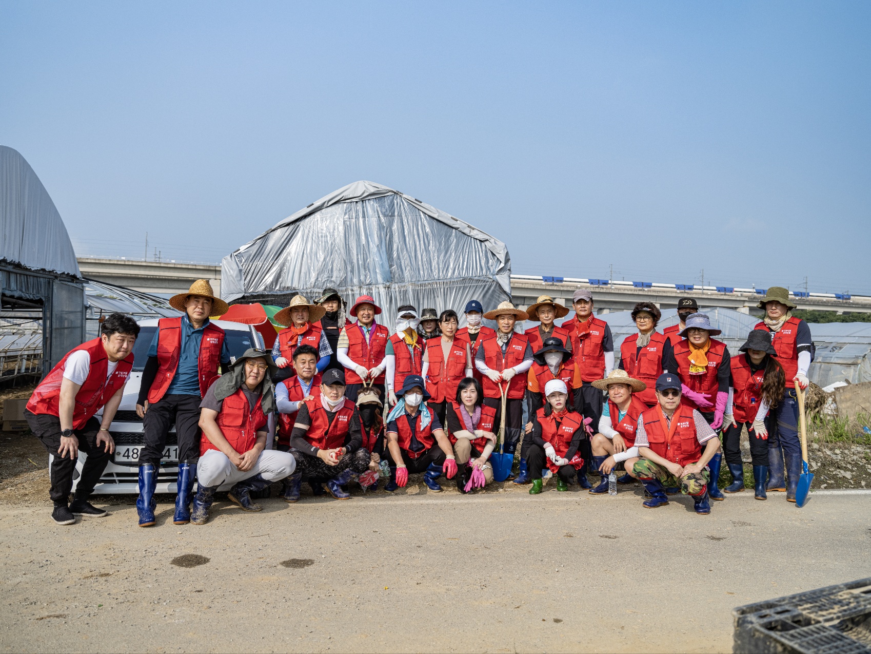 금번 봉사현장은, 지역구인 박노학 의원이 일손이 부족해서 복구에 힘겨워하는 농가를 찾아 이루어졌다. 당일은, 100 여명이 합심해서 일손을 도왔다