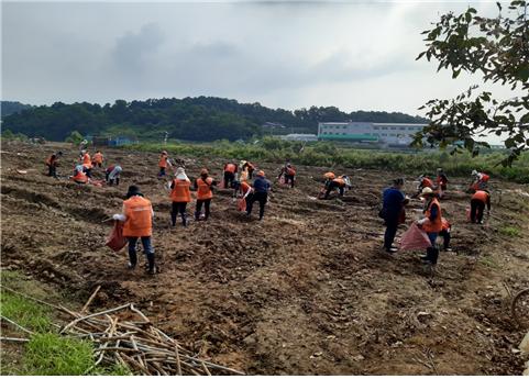 군 병력 150명은 오송읍 서평리 파밭 비닐 벗기기 작업에 힘을 보탰다.