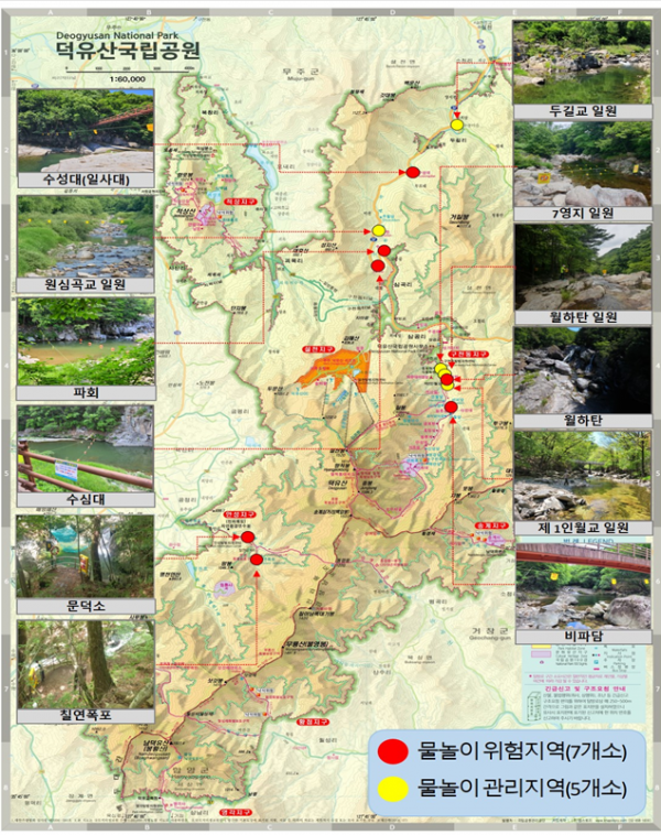 이어 탐방객 왕래가 잦은 구천계곡 탐방로 침수위험지역의 시설개선 현장과 덕유대야영장을 살펴보고 재난 발생 시 야영객 대피로 및 재난 예·경보시설 등을 확인한다.