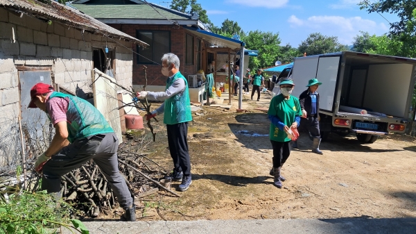 또한 최00씨의 생활환경 개선을 위해 쓰레기 수거 및 처리 작업도 함께 이루어졌다.