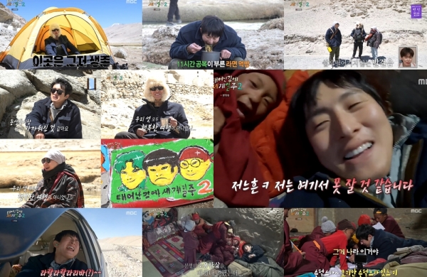압도적인 대자연의 풍광 속에서 직접 불을 피우고 나무로 젓가락을 만들고 삽으로 땅을 고르는 등 고산병과 싸우며 생존을 방불케 하는 캠핑 현장에서 날 것의 예측불가 장면들이 쏟아졌다.